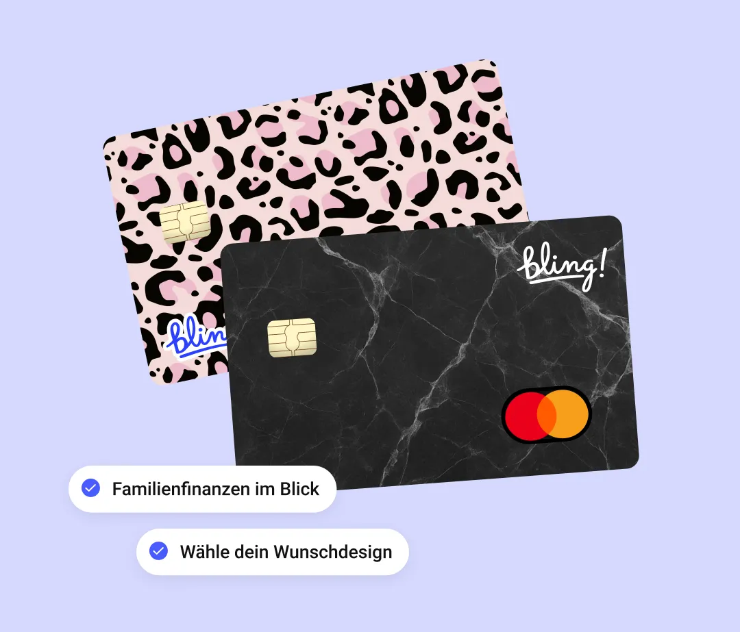 Bis zu zwei Elternkarten sind in Family+ enthalten! Bezahle weltweit gebührenfrei – überall dort, wo Mastercard akzeptiert wird. Lade flexibel Guthaben entsprechend deiner Budgets auf und lege Sparziele fest. Über die Bling App hast du all deine Ausgaben immer im Blick. Schulden sind nicht möglich – dafür aber die Auswahl aus über 50 individuellen Designs.
