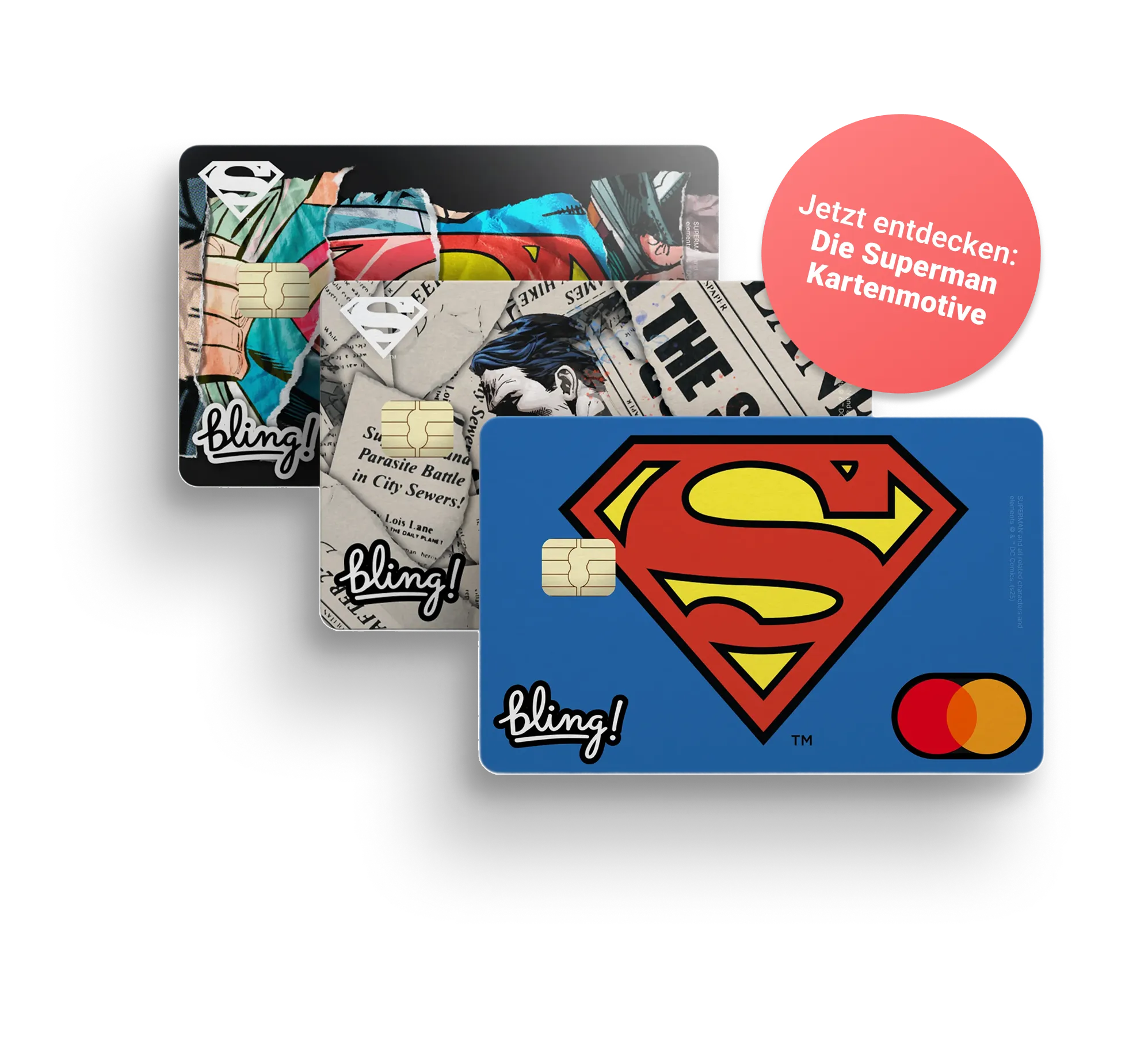 Mit der Bling Card zahlst du weltweit gebührenfrei – Online und lokal im Geschäft. Über die App hast du dein Budget immer im Blick. Einmal aufgeladen, fertig, los. Perfekt für die Reise. Und das Beste: Die Geldkarte kommt in über 100 exklusiven Designs. So machst du deine Bezahlkarte zu einem persönlichen Lieblingsstück. Eine besondere Bezahlerfahrung, die jede Kreditkarte schlägt. Geeignet für Kinder, Jugendliche und Erwachsene. Wähle jetzt dein Kartenmotiv – zum Beispiel von Superman!