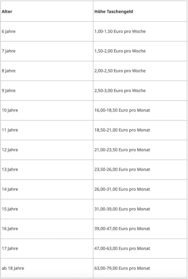 Wie viel Geld sollte nun dem eigenen Kind in der Woche oder im Monat gegeben werden? Das liegt natürlich im Ermessen der Eltern. Das Deutsche Jugendinstitut hat allerdings zusammen mit den Jugendämtern Richtgrößen festgelegt, die als Empfehlung gelten. Wie hoch diese ausfallen, haben wir in der offiziellen Tabelle einmal zusammengefasst.