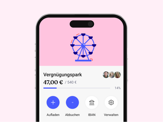 In der Kinder-Ansicht kann dein Kind sein Budget überblicken und sein Geld in Spartöpfe stecken.